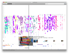 LastHistory allows you to analyze music listening histories from Last.fm through an interactive visualization and to explore your own past by combining the music you listened to with your own photos and calendar entries. It is written as a desktop application for Mac OS X v10.5 or higher.